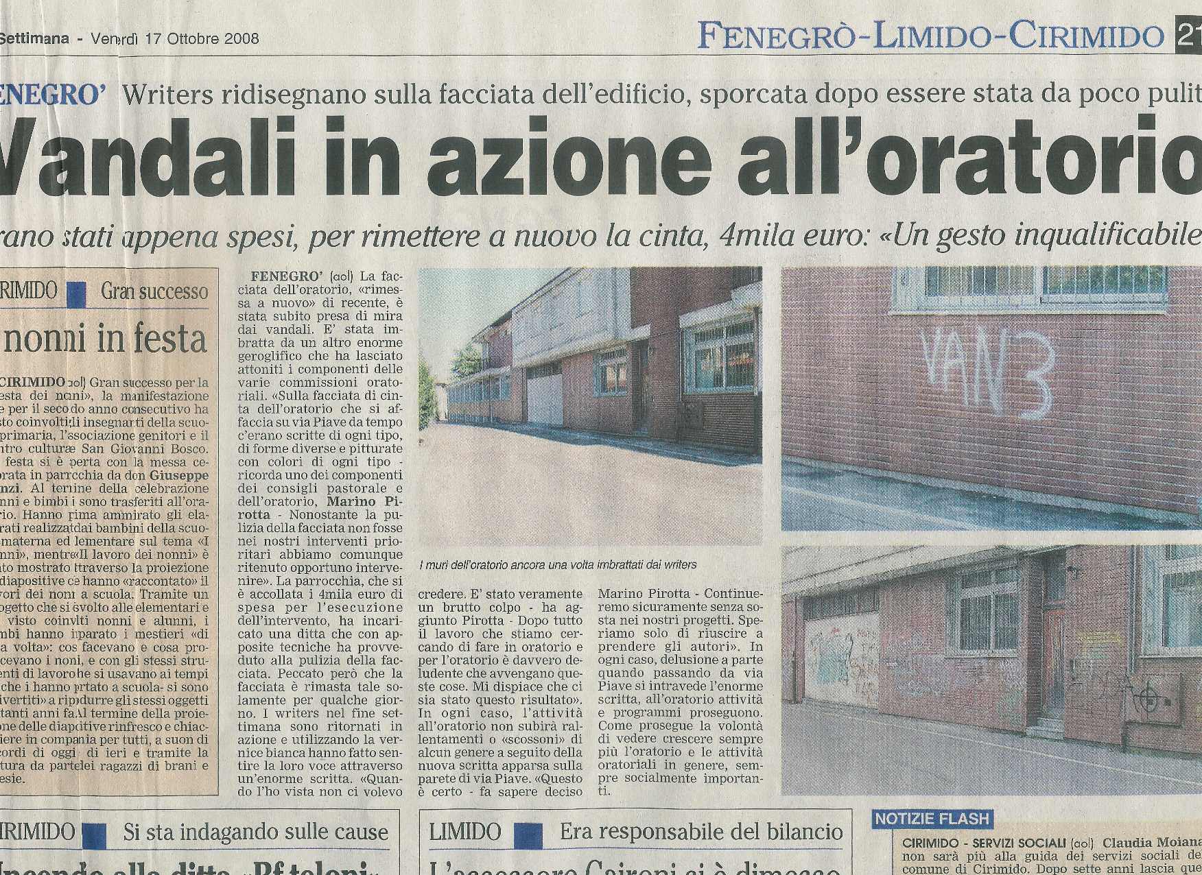 Oratorio pulito e subito imbrattato (la Provincia)