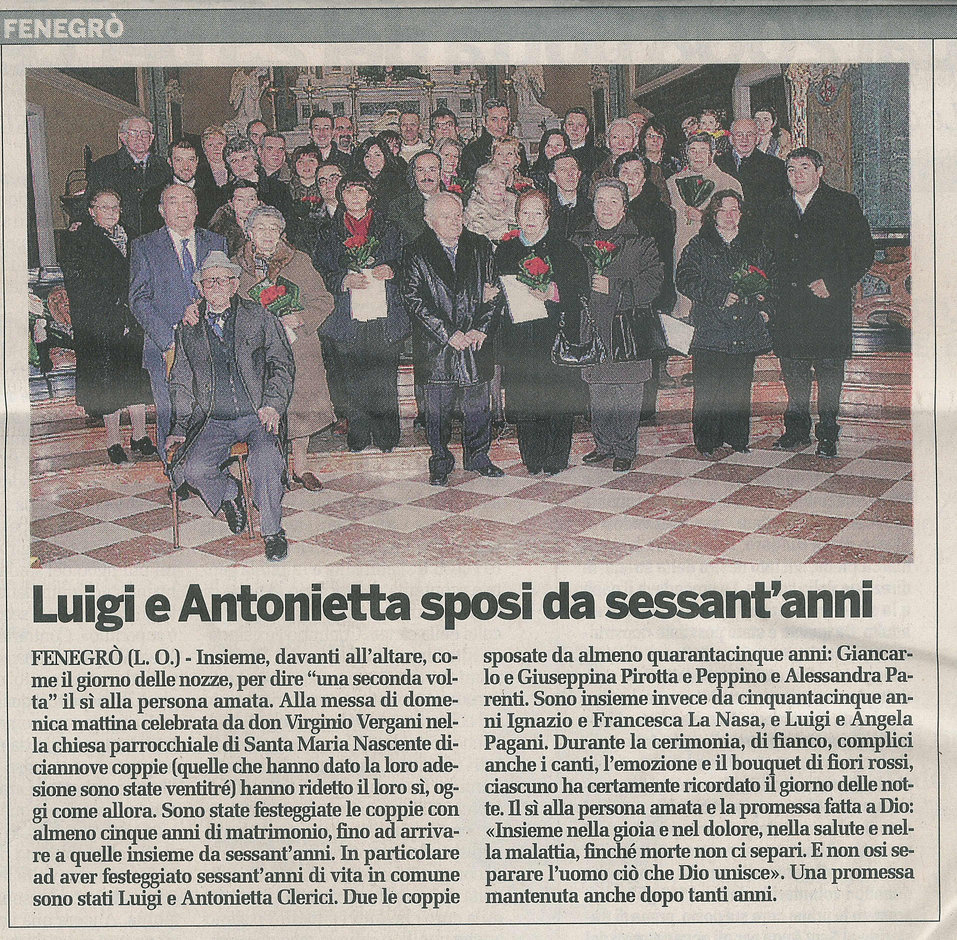 Luigi e Antonietta sposi da sessant'anni (la Provincia)